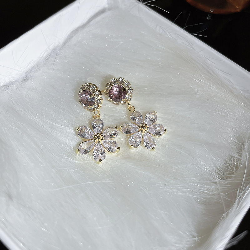 S925銀鑲鑽紫色花朵耳環