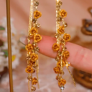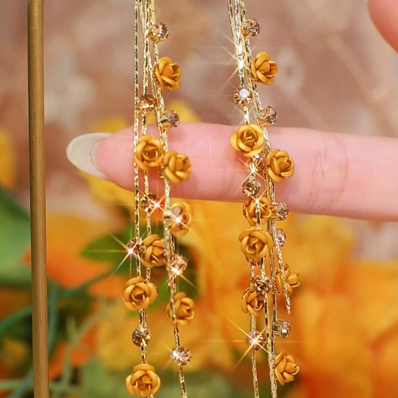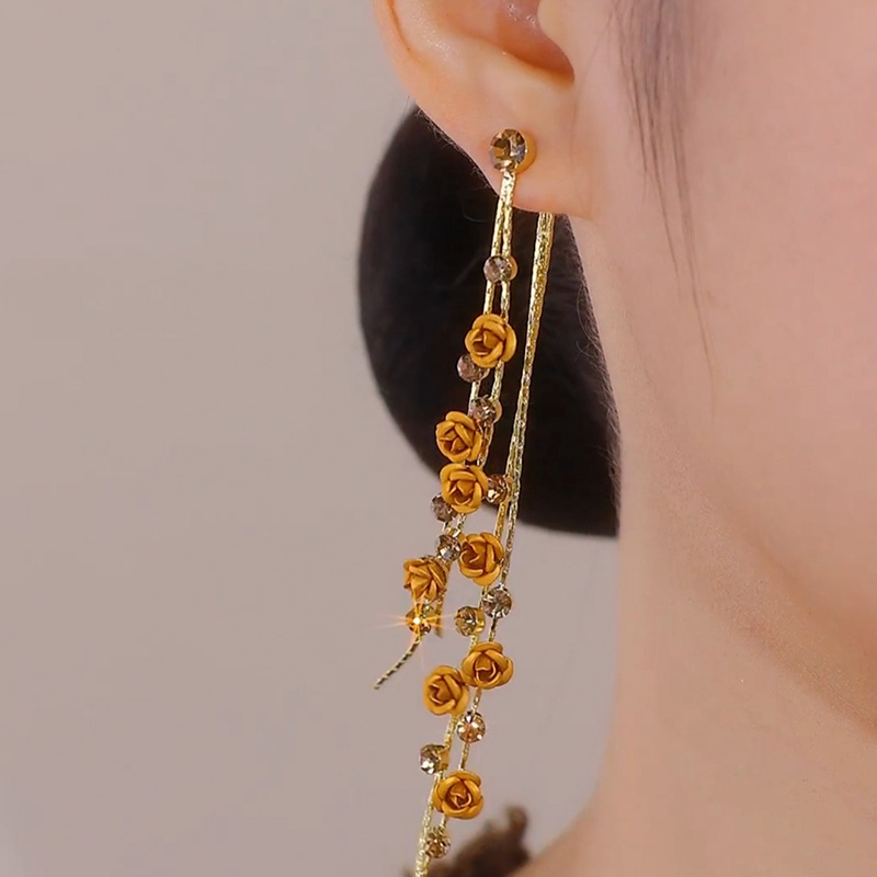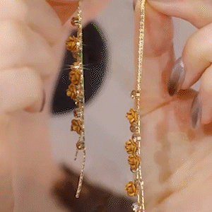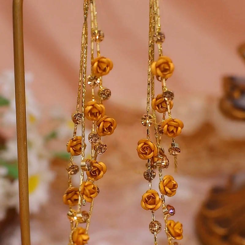 長款茶色玫瑰花流蘇耳環