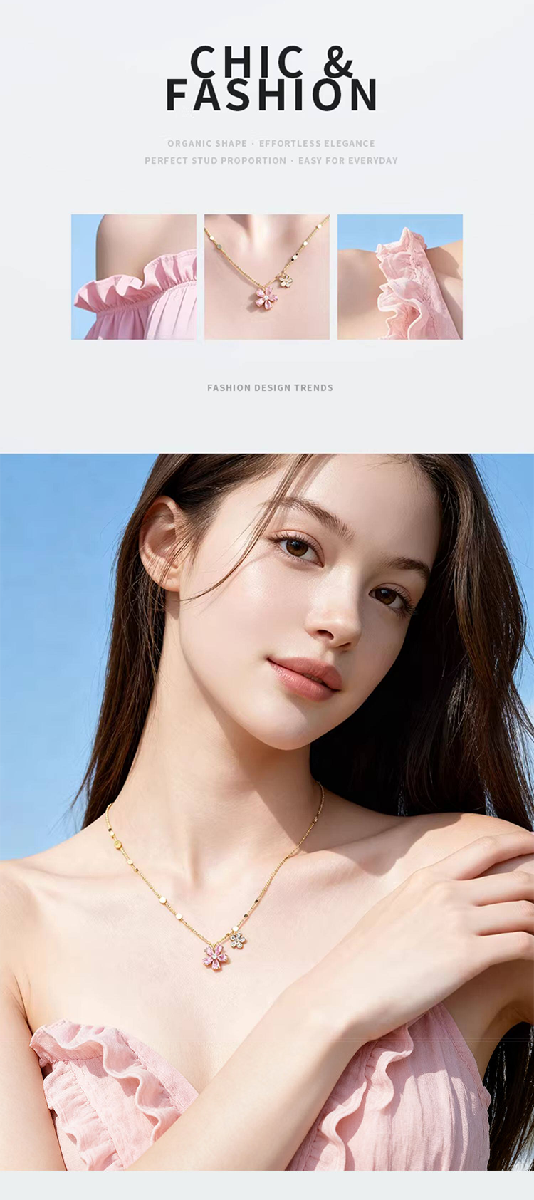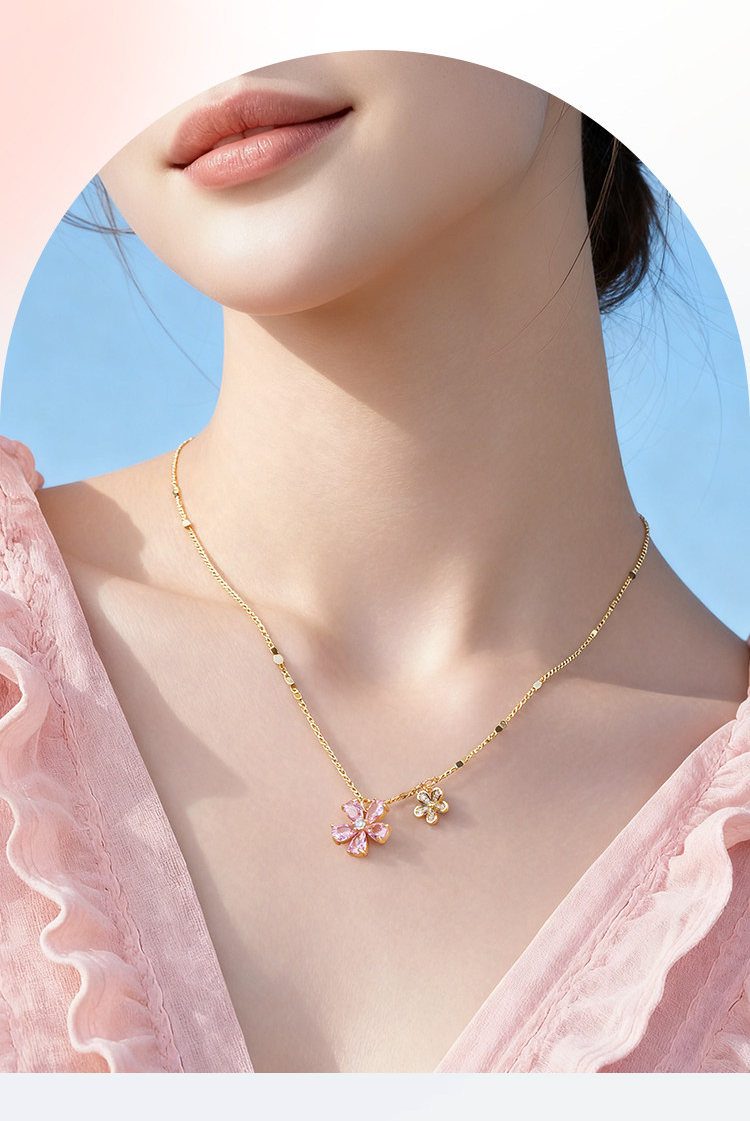 粉紅櫻花輕奢純銀鎖骨錬