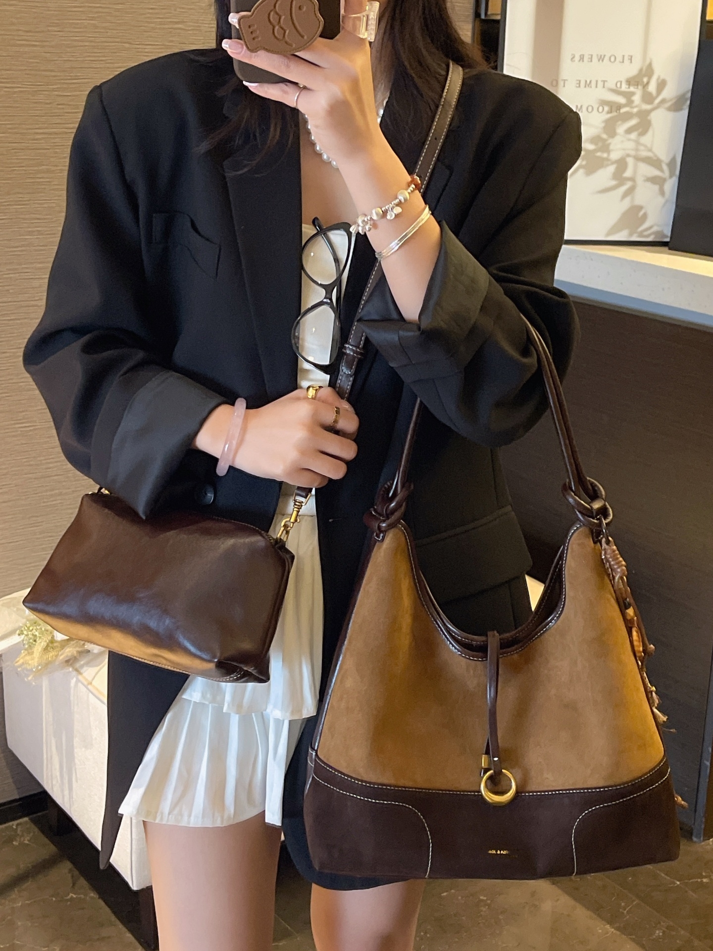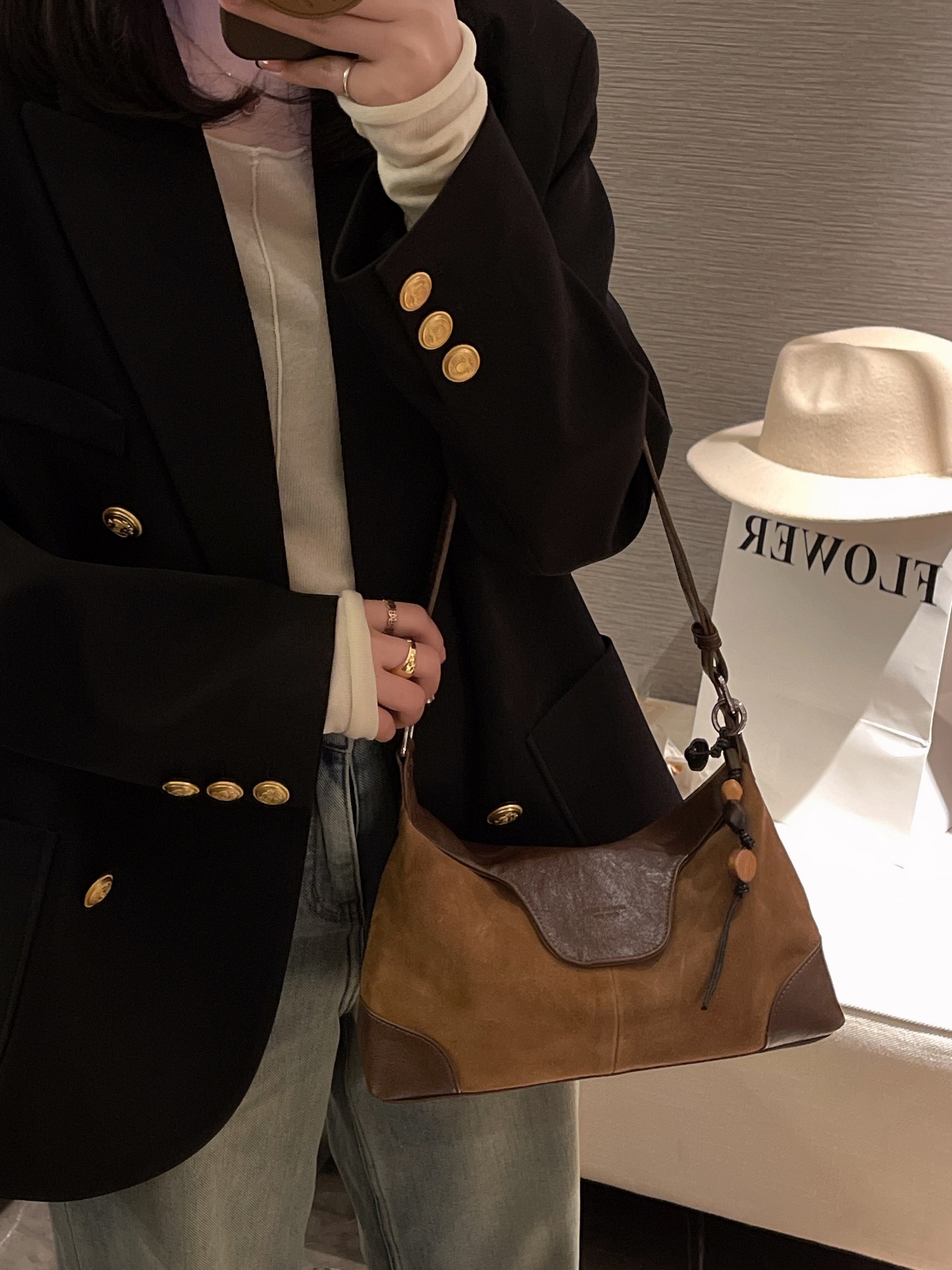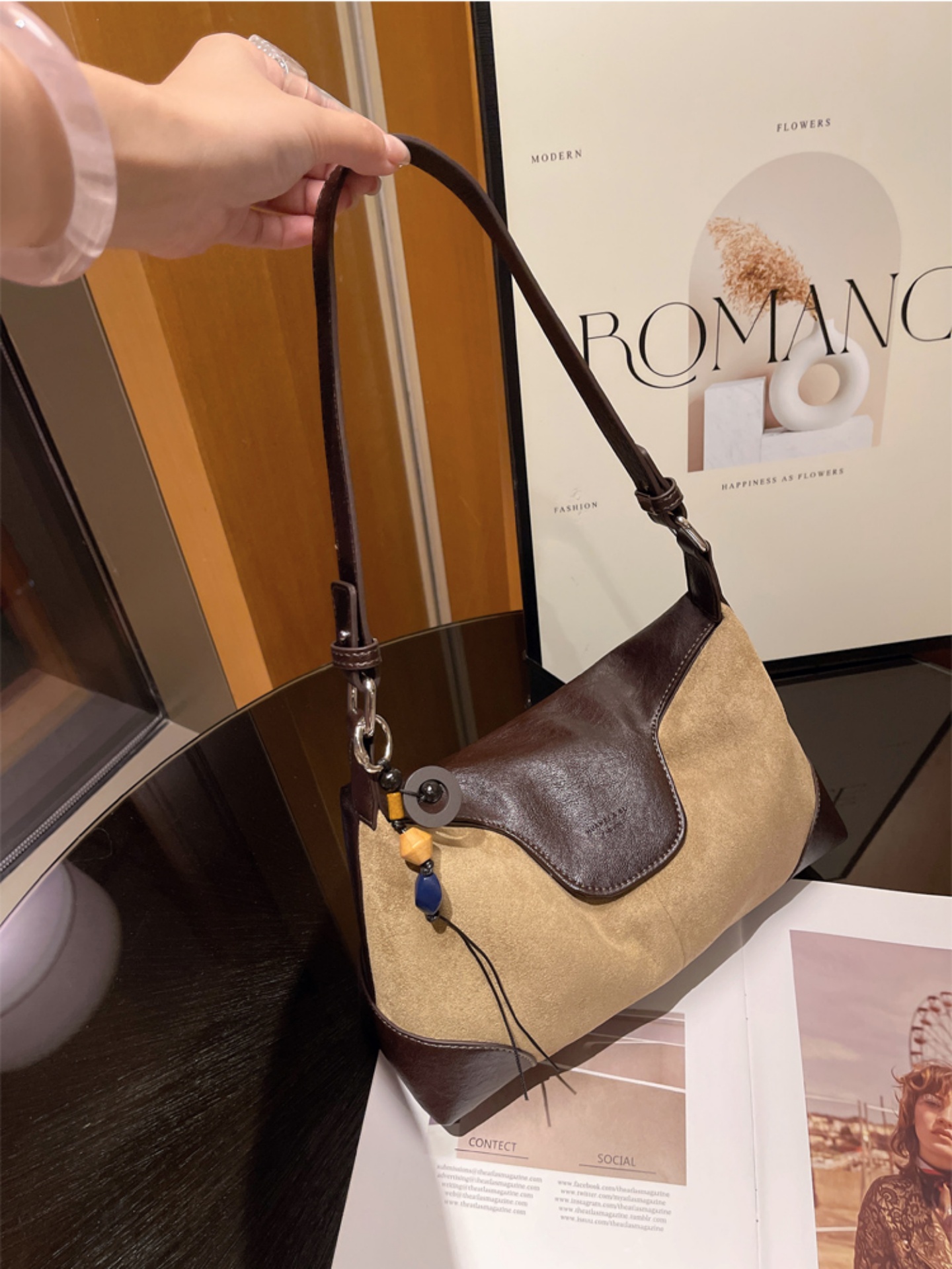 復古磨砂牛皮腋下包 通勤百搭斜肩包