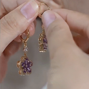 氣質紫色花朵水晶耳環