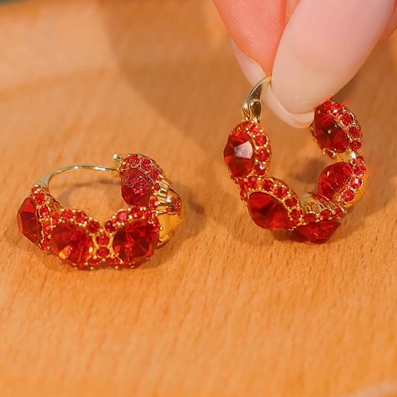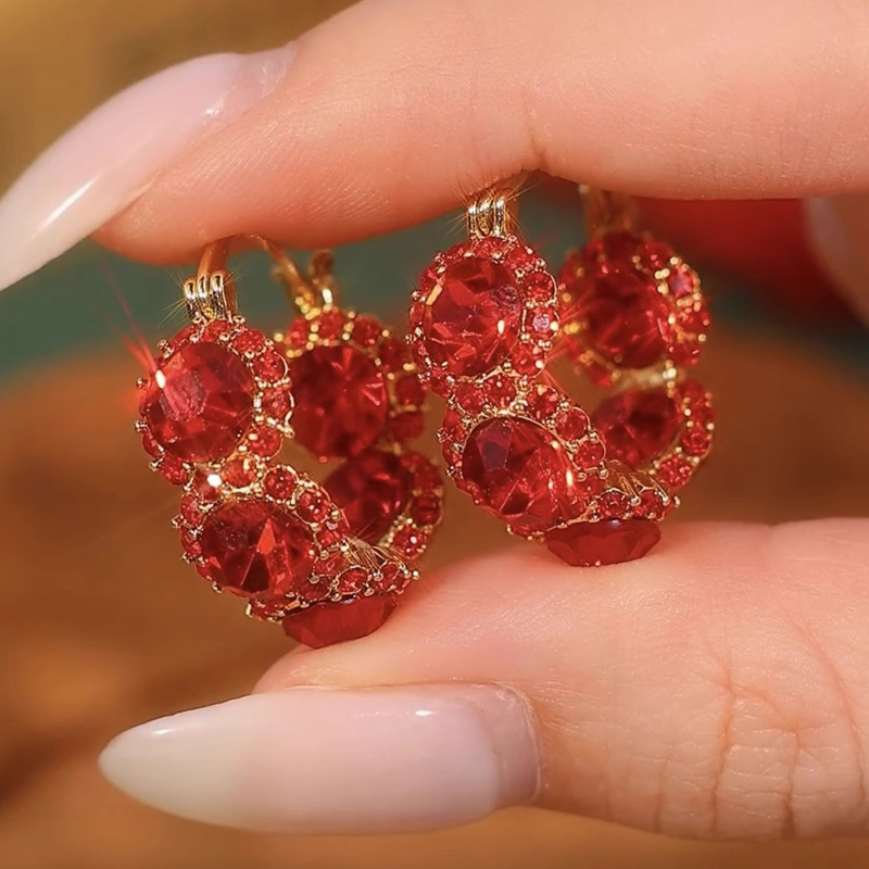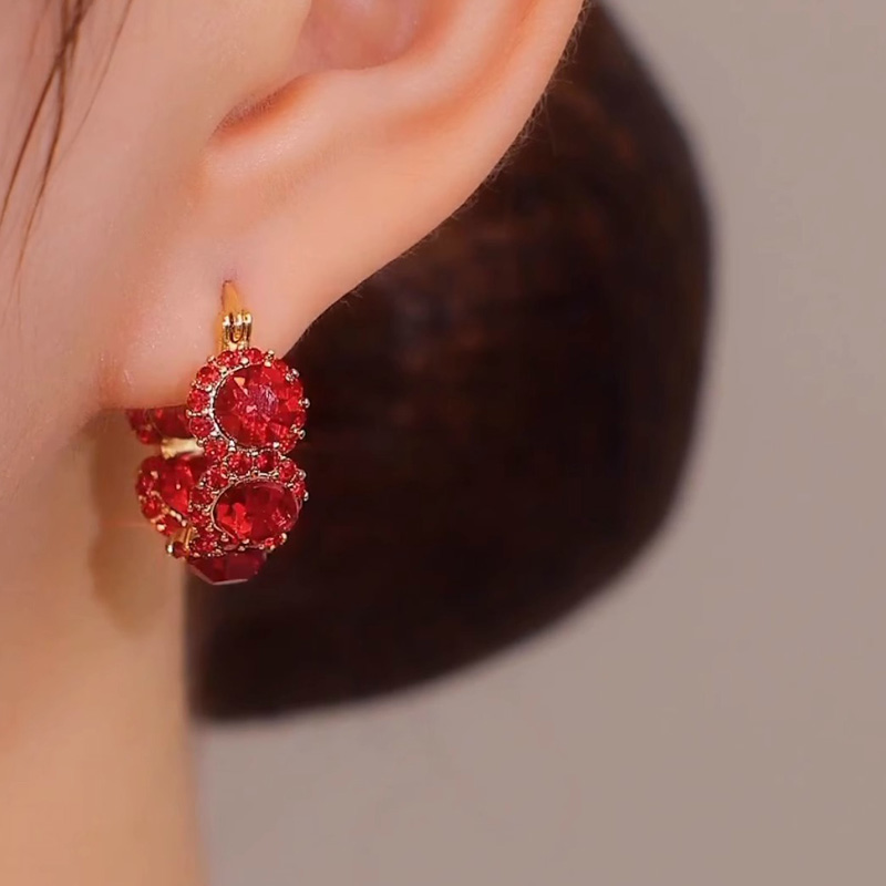 微鑲紅玫瑰花鋯石耳環