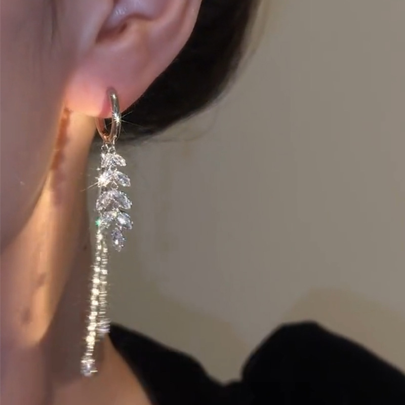 銀色麥穗長款流蘇耳環
