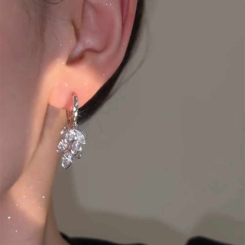 銀色鋯石麥穗耳扣耳環