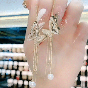 高級感鋯石珍珠蝴蝶耳環