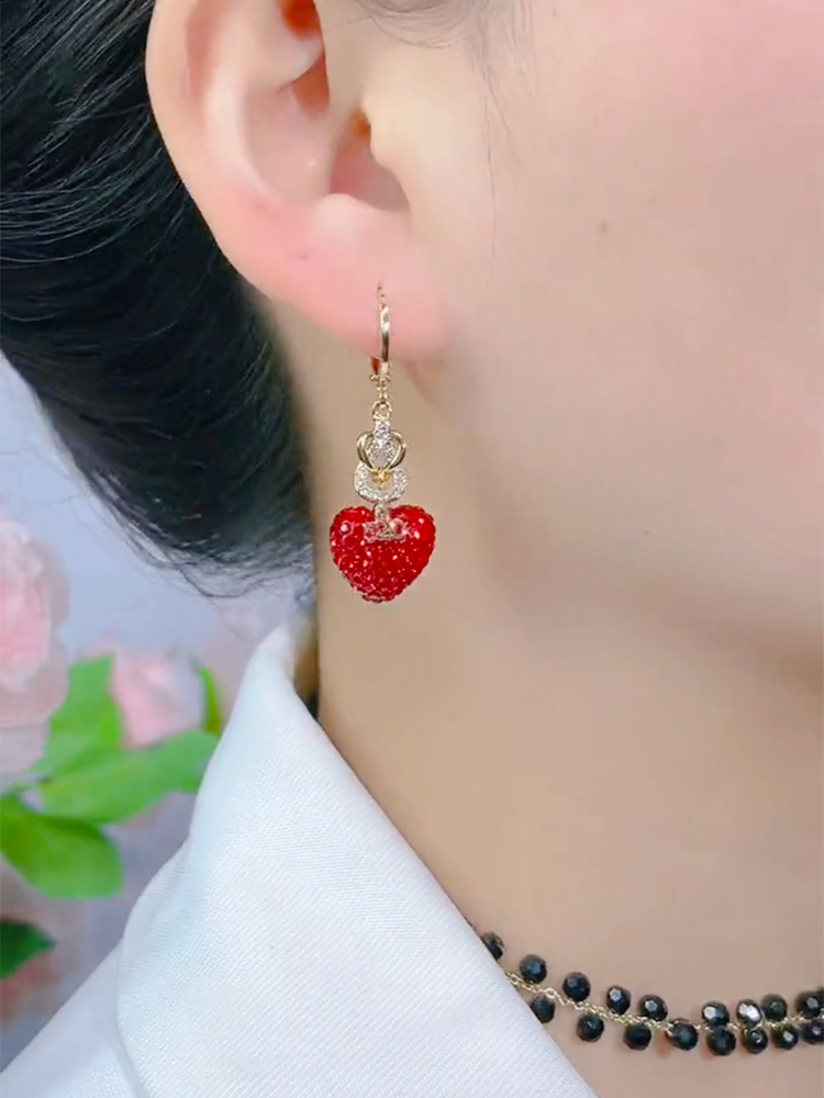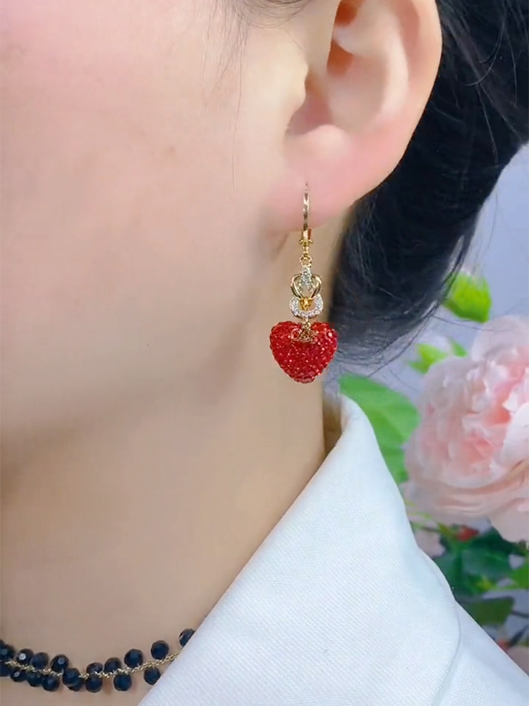 氣質紅色滿鑽愛心耳環
