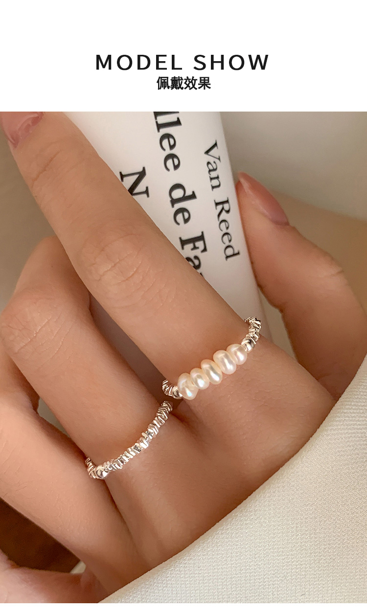S999純銀碎銀珍珠戒指