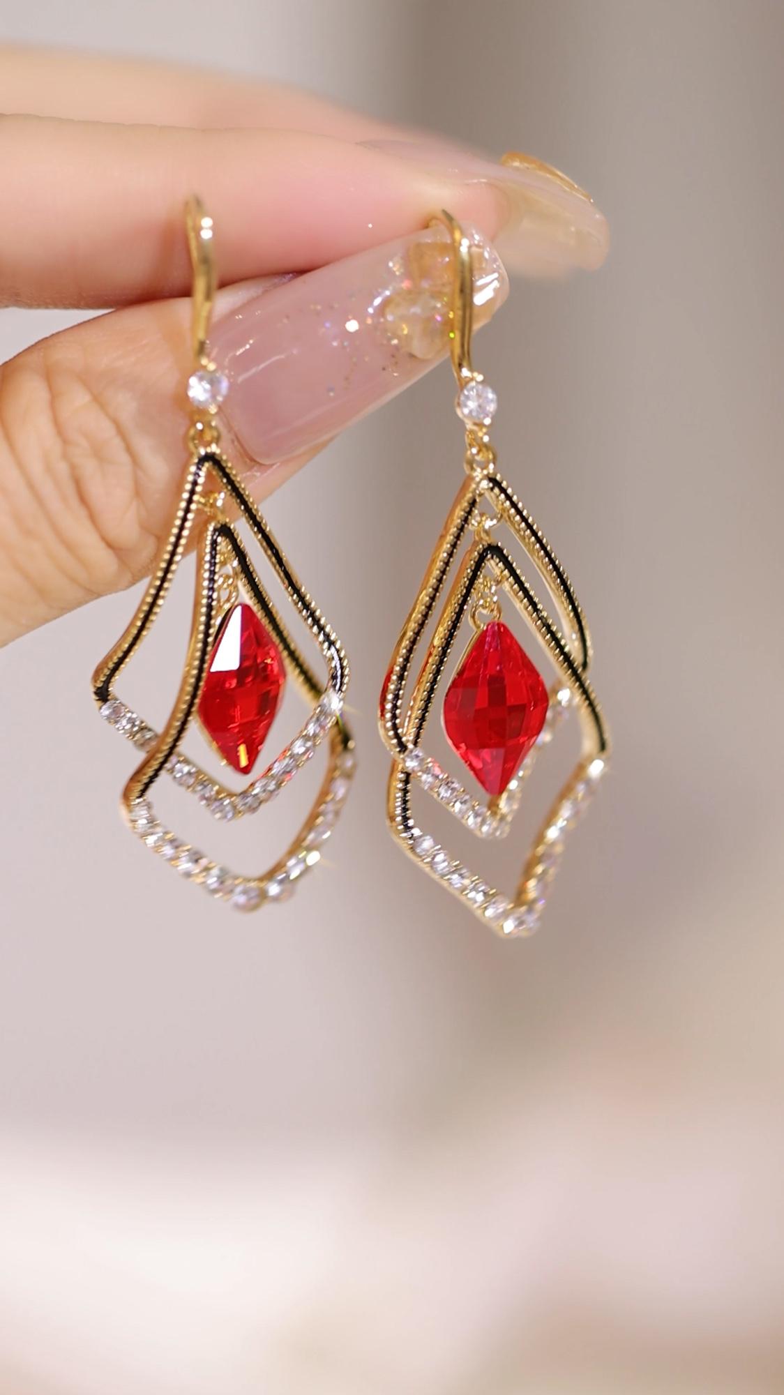 復古顯瘦港風水晶耳環
