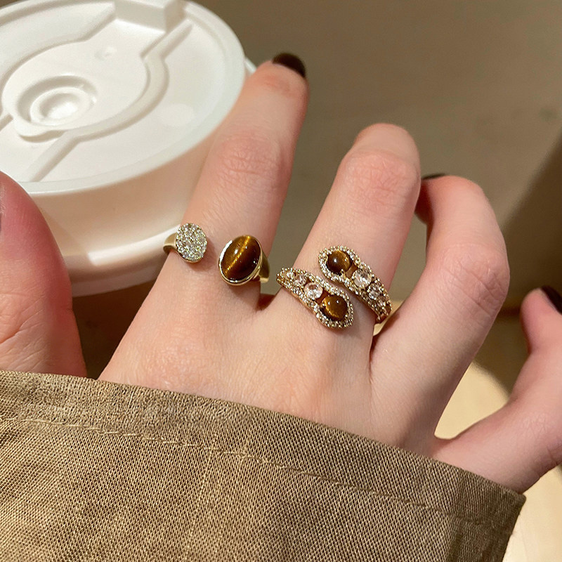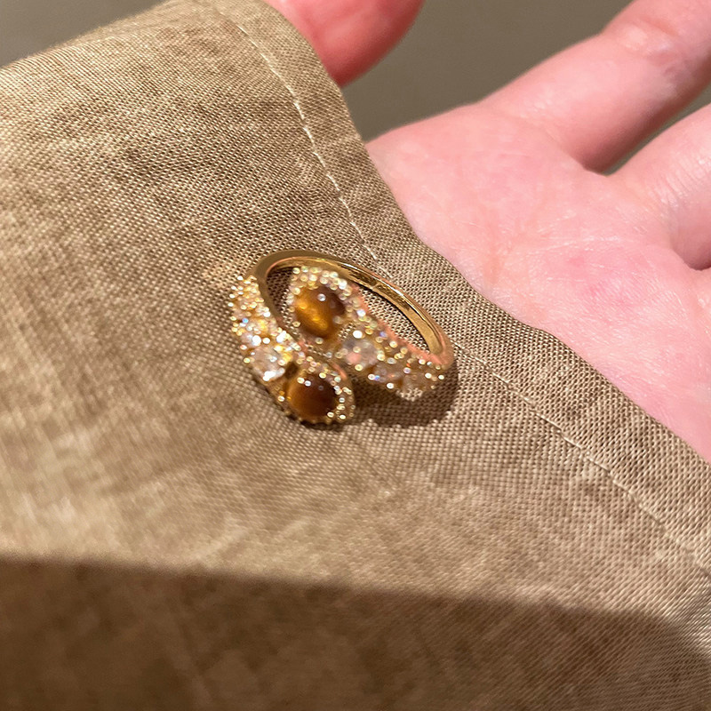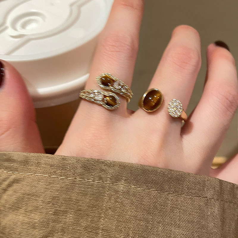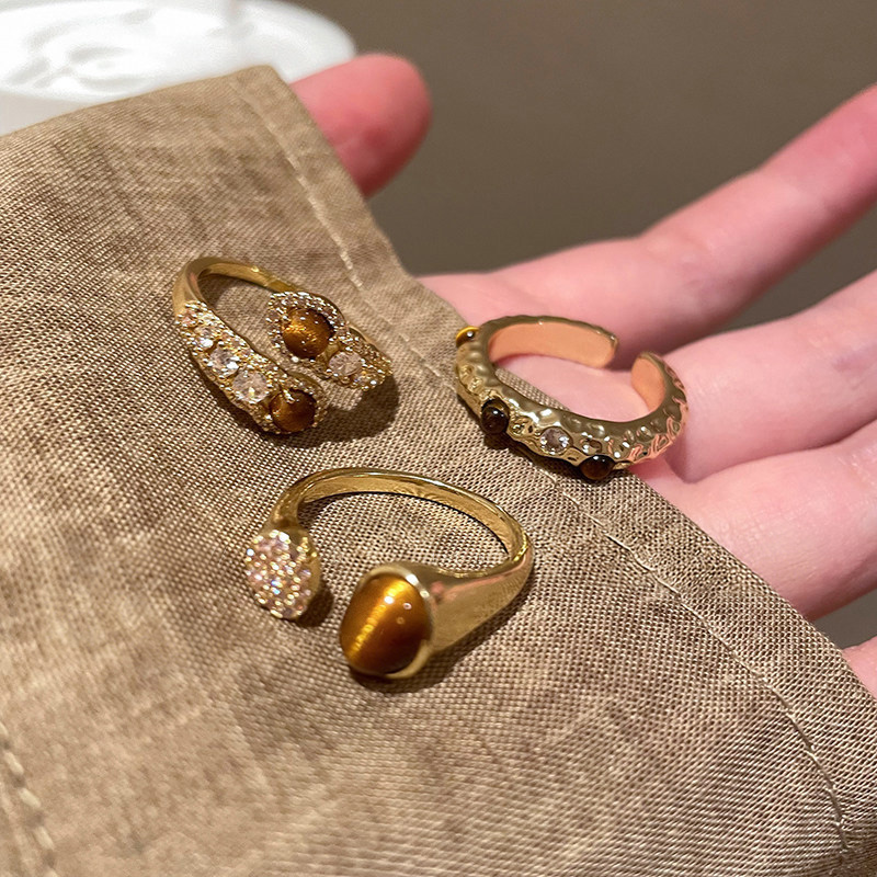 復古美拉德虎眼石開口戒指